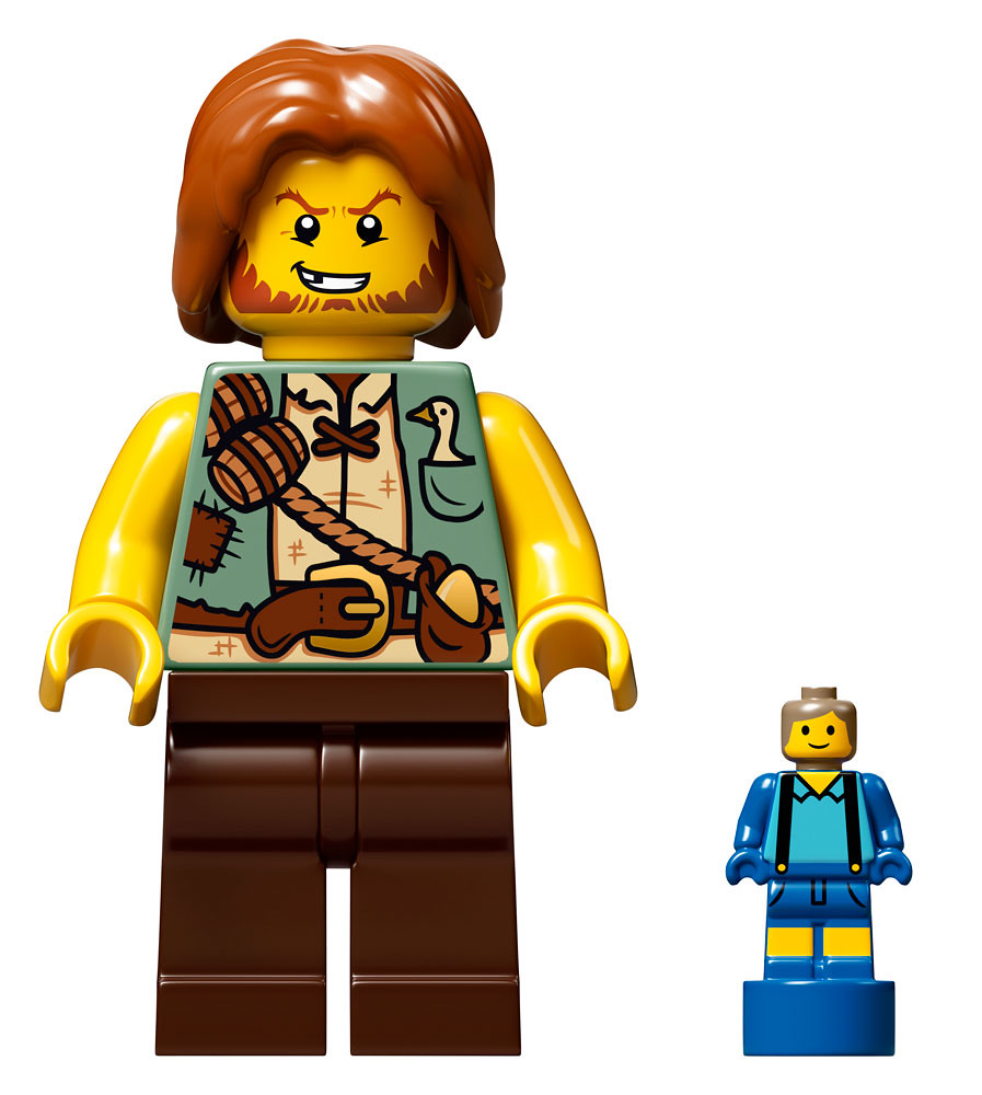 而傑克與魔豆則打造出了成長到雲端之上的巨大藤蔓,以白色弧形磚拼搭的雲朵真可愛~在藤蔓頂端有座巨人的家,但可能是礙於零件數量、書本闔起來的容量限制,巨人的家尺寸有點太小,說不定玩家可以自行發現其他加蓋的方法歐~樂高人偶成了巨人,傑克則是以微型人偶的尺寸來代表,同樣非常有趣!這組真的超讚啊!