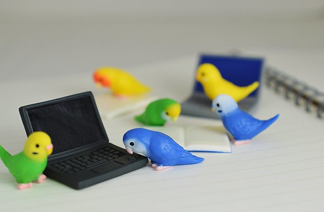 5.パソコン(灰)とセキセイインコ(イエロー)/筆電(灰色)和虎皮鸚鵡(黃色)