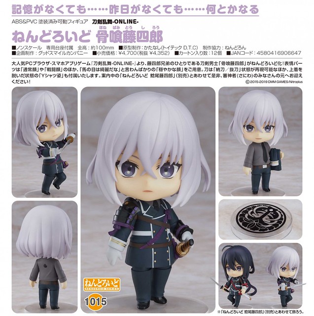 遊戲設定是藤四郎兄弟之一的刀劍男士「骨喰藤四郎」此次也以黏土人系列來呈現,此次表情配件附有「普通臉」、「戰鬥臉」以及彷彿在說「馬的眼睛真漂亮」的「溫和臉」可以替換,武器刀的部分也可以重現「收刀/拔刀」的狀態等等,以及還附有脫下外套的「襯衫姿態」,另外於GOODSMILE線上商店訂購此作將多附有「黏土人Plus 橡膠吊飾 骨喰藤四郎 馬的眼睛真漂亮Ver.」特典,喜愛《刀劍亂舞-ONLINE-》系列的玩具人可以參考一下歐!