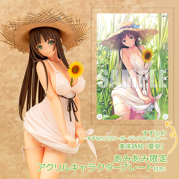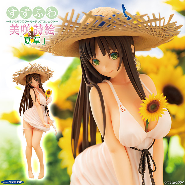 主打成人向美少女上色完成品的日本大金工業(ダイキ工業)玩具公司,這次將以"Suzufuwa Suzufane花園計畫(すずふわ ―すずなりフラワーガーデンプロジェクト―)"(名稱暫譯)來推出繪師"美咲 詩絵(みさき・しえ)"的「夏草」美少女上色完成作品,美咲詩繪的"咲"字是笑的古字也念為"笑",這次精彩地將其自創畫作完整呈現出來,另外於amiami(あみあみ)線上商店訂購此作品,多附有A5尺寸美咲詩繪原畫圖案的壓克力立牌特典。