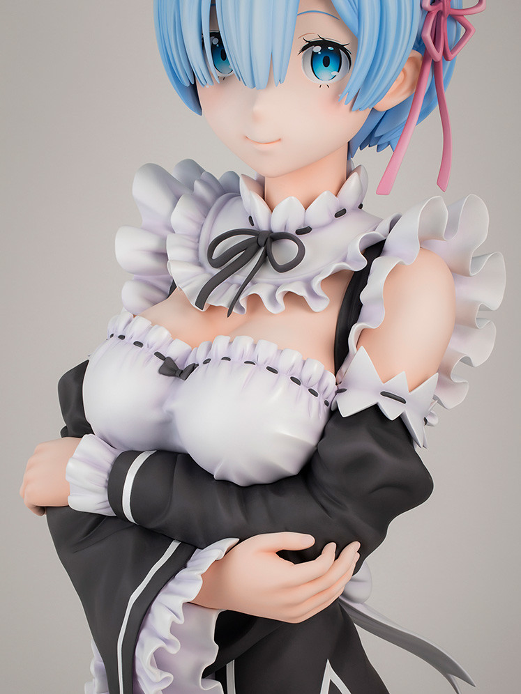 「雷姆 等身大胸像」的原型是由 Design COCO 公司擔任製作,發揮 Design COCO 長年製作等身大雕像的精湛技術與經驗,打造出 1/1 比例、全高 70 公分的雷姆胸像。將手環抱胸前、露出溫柔笑容的雷姆,從髮束、白裡透紅的肌膚到服裝的皺摺與質感都擁有相當細膩的造型,全身比例也經過精密調整呈現出纖細的少女體型,讓人想要緊緊抱住守護她,真是有如鬼助的可愛!