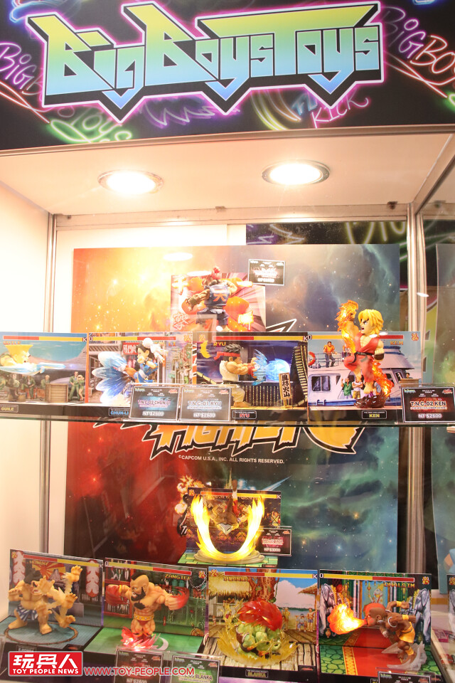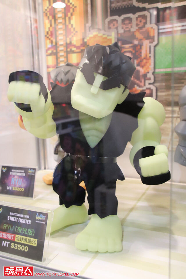 擅長推出《快打旋風》相關作品的Bigboystoys 不但展出了Bulkyz Collection 系列多種配色的「貝卡」,還有TTF 限定的夜光版「隆」、「肯」,以及凱爾的原型作品!