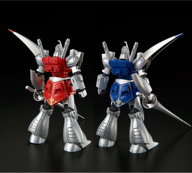 「HG 1/144 卡斯 R/L」共同收錄「卡斯 R」 、「卡斯L」兩架機體,套件以先前發售的「HGUC 212 卡爾巴迪β」為基礎,肩部、腕部、背包、熱能長槍透過新規造型再現,並使用金屬色成形表現出銀色外裝甲質感,還附上了包含金色花紋的水貼,展現「皇家守衛」的高級感。