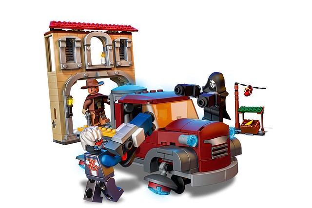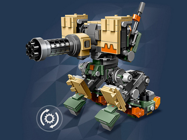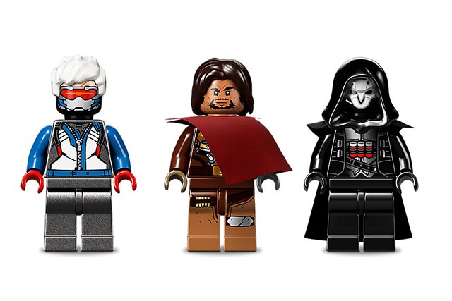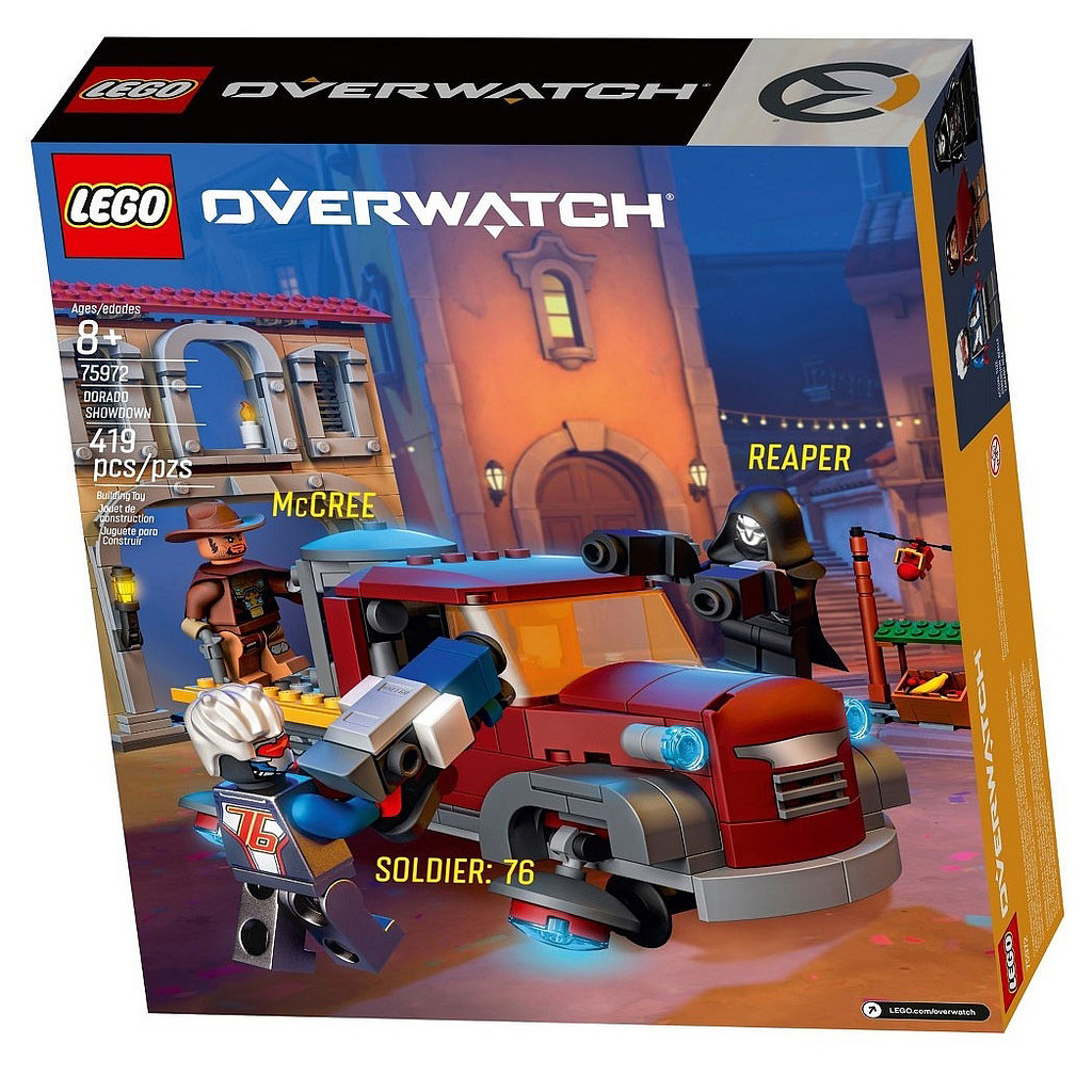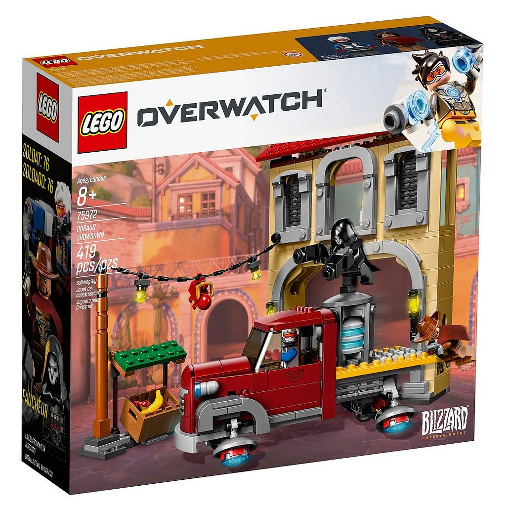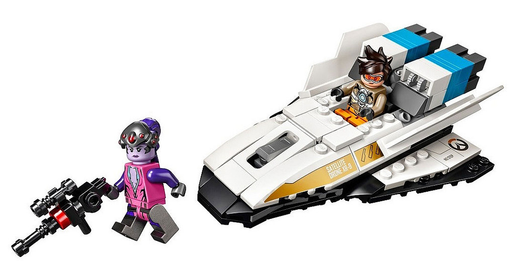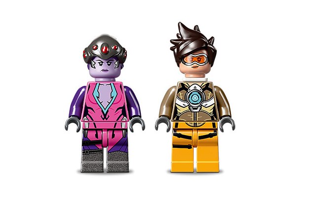首先看到的是編號75970 的小型盒組,人偶包含了可愛的閃光(Tracer)與冷血刺客奪命女(Widowmaker),人偶的印刷十分精緻,閃光翹翹的髮型、奪命女的偵查護目鏡都忠實再現;另外,這組還附屬了一台在護送任務中,總是移動超緩慢的Payload!