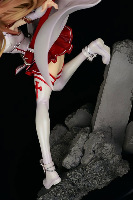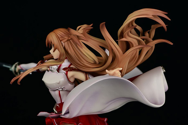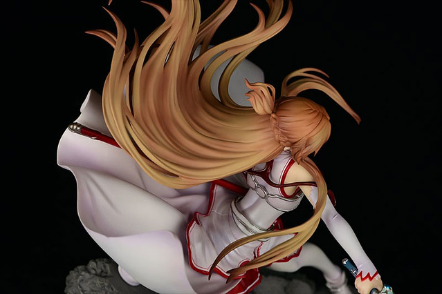 這次次將亞絲娜栗色長髮與身上穿著「血盟騎士團」戰鬥服裝精彩再現,並且以重現她手握愛劍「閃爍之光」連續發動劍技美麗瞬間的姿態,身體有著動態的樣貌帶動衣襬隨風飄揚,同時頭髮因為招式牽動飄逸的模樣也相當仔細地製作出來,以及在此次作品底座的岩石部份也刻畫的十分寫實,喜愛《刀劍神域》系列作品的玩具人可以參考一下歐!