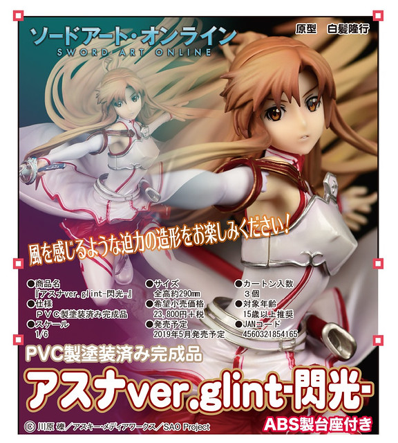 專門製作美少女上色完成品的ORCATOYS(オルカトイズ)玩具公司,這次將以《刀劍神域劇場版:序列爭戰》劇場版為題材來推出「亞絲娜ver.glint-閃光-(アスナver.glint-閃光-)」的1/6比例上色完成品,近日官網公開其宣傳照片以及販售相關資訊。