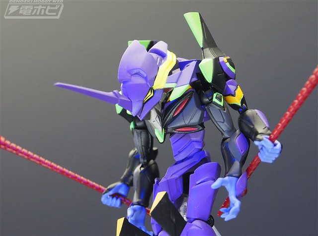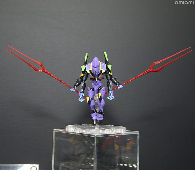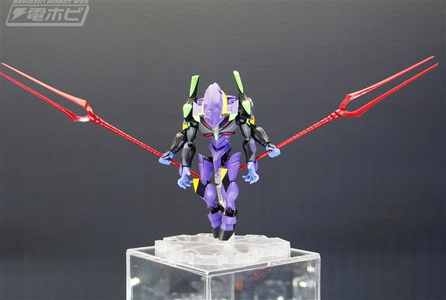 這次NXEDGE STYLE系列的EVA 第13號機附有「4手腕狀態」以及「通常時」的配件可以替換,完整再現劇中所登場的模樣,另外附有兩把「朗基努斯之槍(ロンギヌスの槍)」、交換用手首左右各2種,還有所附屬"RS Hopper"支柱配件,不管是輔助站立、空中漂浮各種高難度的姿勢都可以輕鬆利用RS Hopper來實現,喜愛《新世紀福音戰士》的玩具人千萬別錯過了啊!
