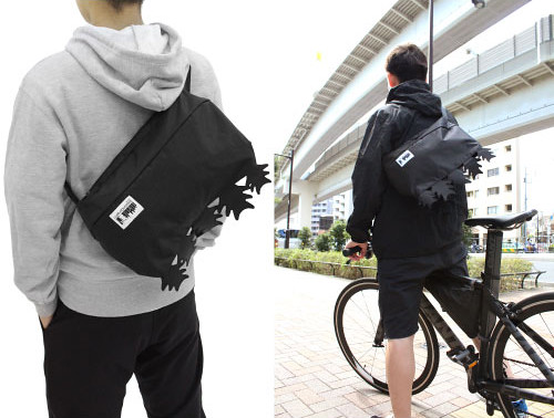 「哥吉拉背鰭造型斜背包」看似普通的黑色斜背包,能夠裝入各種平板手機、隨身物品、生活小物,並能隨著內容多寡調整形狀。然而如果只是這麼普通 COSPA 怎麼可能拿出來賣,上面縫有一片片珊瑚狀的裝飾物,那可是模仿哥吉拉背鰭的超棒造型呀!有了這幾片背鰭後出門都潮到出水,彷彿能從背鰭匯聚能量吐出熱線呢!(此商品並不會發光)