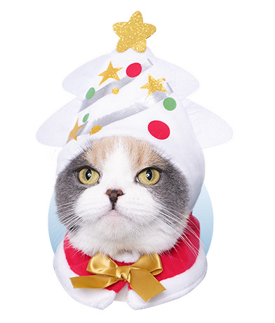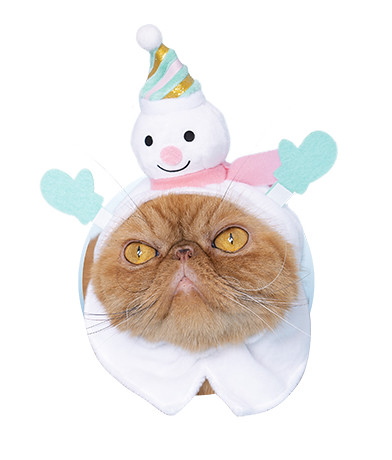 這次的聖誕帽不但變成淡淡的綠色,領結也從本來的紅色改為更具層次的紅金條紋,蛋糕款上有著蠟燭與草莓裝飾著,馴鹿也從咖啡色改為更偏向童話溫暖色調的黃色,雪人款則是將本來的紅色帽子、手套配件改為淺淺的藍綠色,並同樣注入金色條紋,白底的聖誕樹也給人白雪覆蓋其上的感覺,真的很有歡樂節慶的氣息!雖然台灣的聖誕節是很難遇見下雪的,但是看著貓貓們戴上白色聖誕主題的頭套也就滿足啦:D