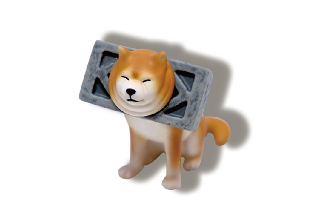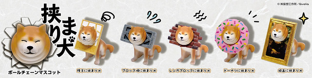 平常看似帥氣英挺的柴犬,其實常常出現各種傻里傻氣的爆笑模樣而成為網路上熱烈轉載的照片; 日本玩具廠牌「Qualia」與「妄想工作室」合作,以「夾住」為主題,推出了多款生動重現柴柴被卡住爆笑場面的「夾住犬(挟まり犬)」轉蛋吊飾系列~