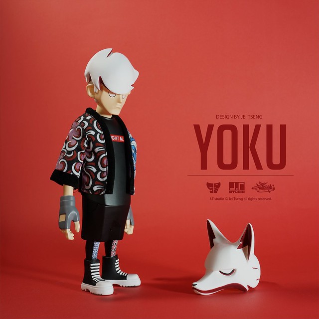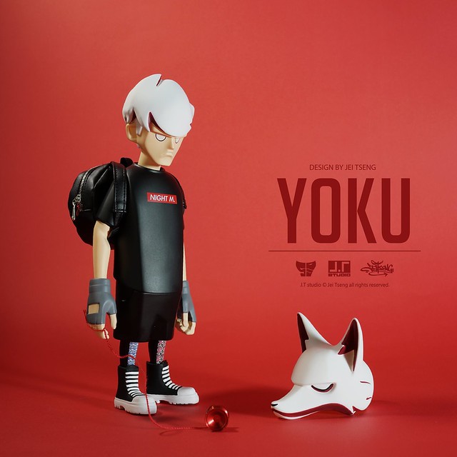 「YOKU 8吋搪膠人偶」高約21 公分,頭髮呈現白色,全身的服裝是以黑色為主調,凸顯了YOKU 偏向黑暗面的角色設定,但在雙眼部分和哥哥一樣採用白眼造型,不像12吋人偶給人極度陰沈、邪惡的感覺,黑色上衣則印製了在黑暗中用任何手段傷害為了夢想而努力人們的「Night M.」字樣,白色狐狸面具在多處施以紅色點綴,配件內容包含左、右花樣顏色不對稱的外套、仿皮質感的黑色圓形後背包,以及紅色溜溜球。