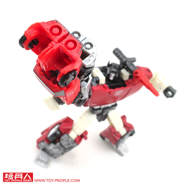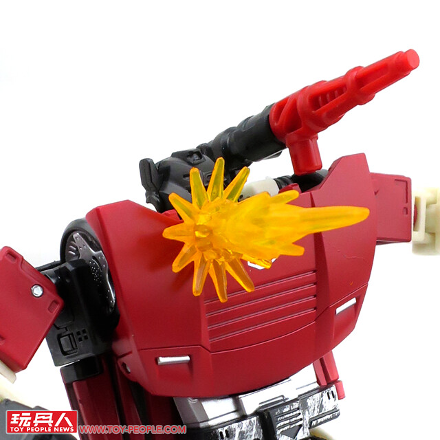 ▼小小的頭雕也有著出乎意料的分色塗裝,仔細一看眼部的風鏡和臉部是不同的紅色,額頭的博派標誌則是採用印刷的方式完整呈現!