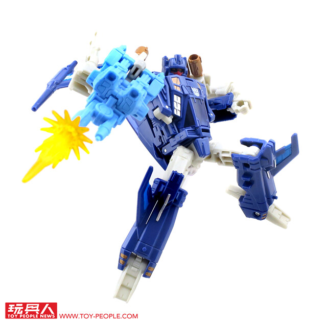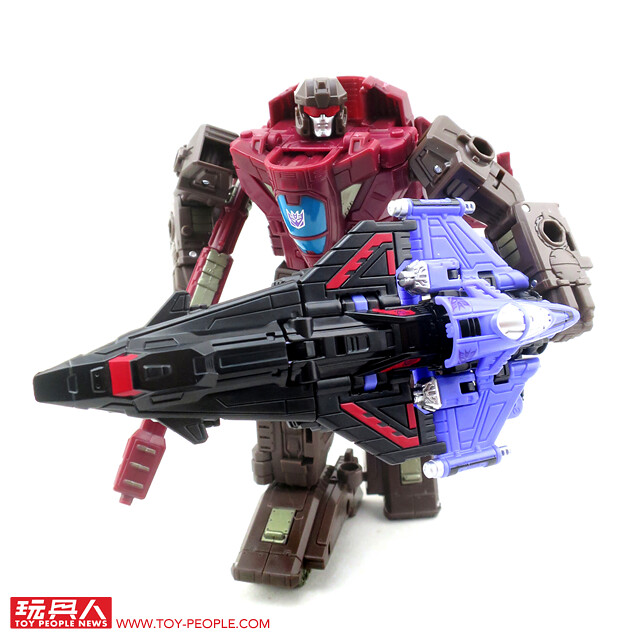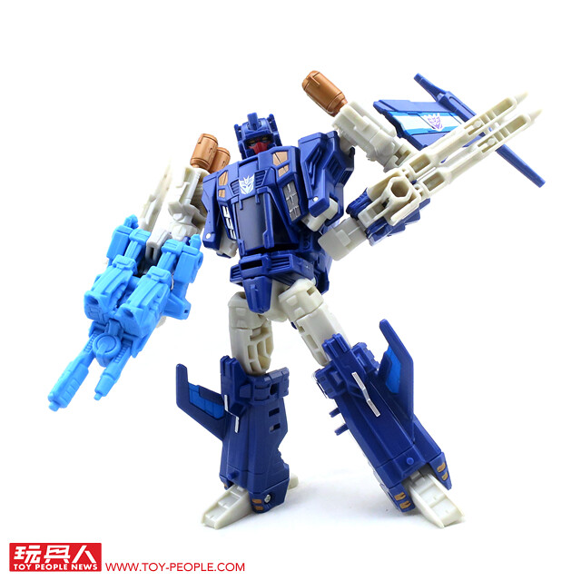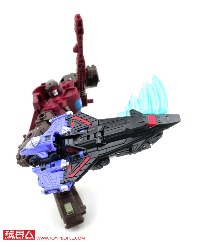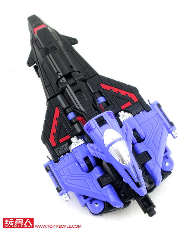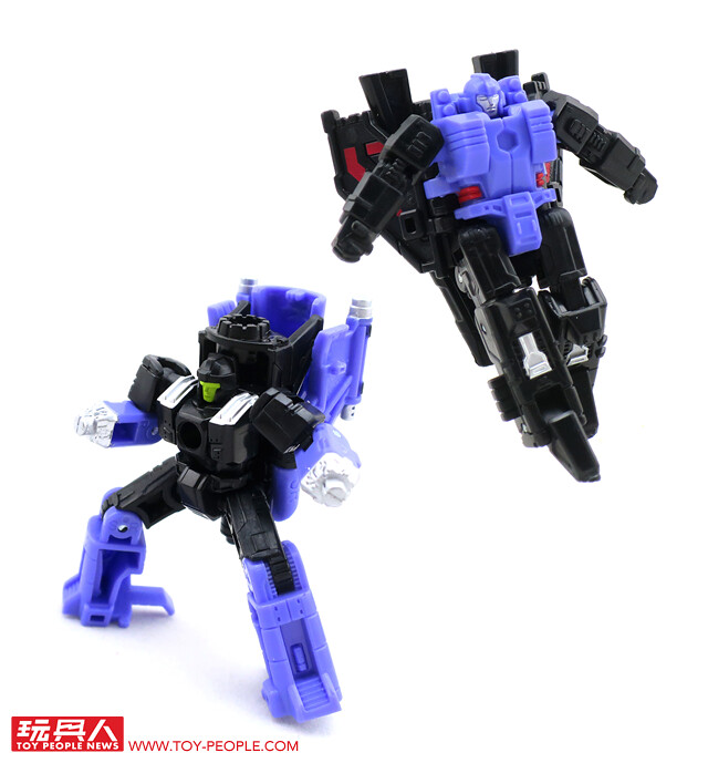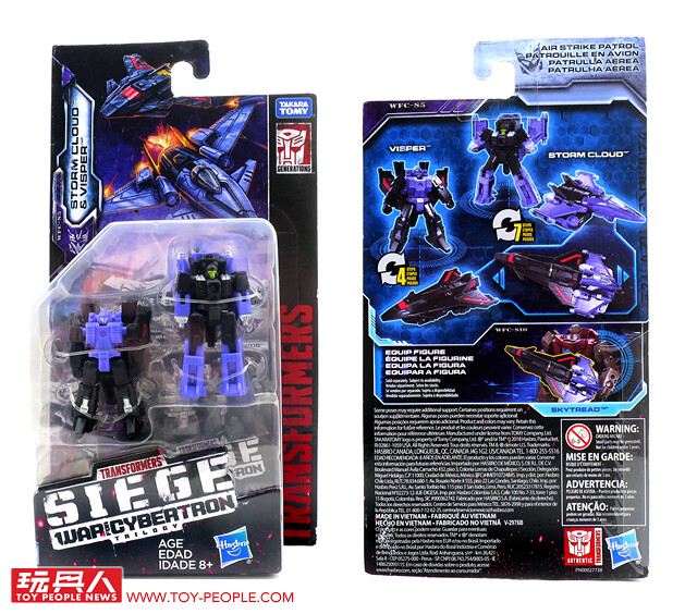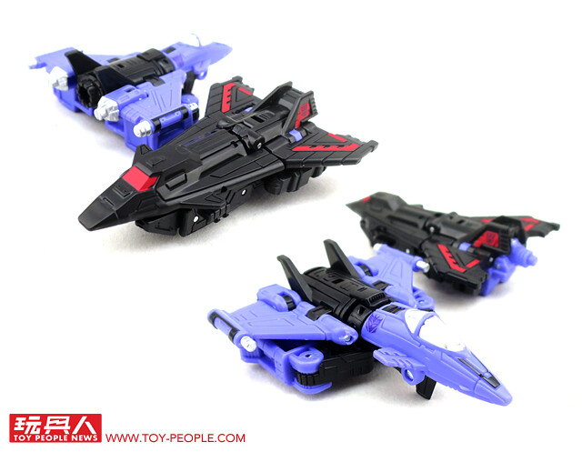 ▼WFC-S5「耳語」(Visper,對應G1的Whisper)與「暴風雲」(Storm Cloud),出自G1狂派的「空襲巡邏隊」(Air Strike Patrol),可變形為類似F-19的戰機和飆風戰鬥機(Dassault Rafale),並組合成「電路流諜影刃」(Circuitstream Spyblade)。