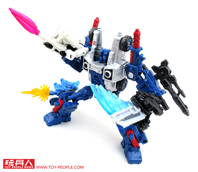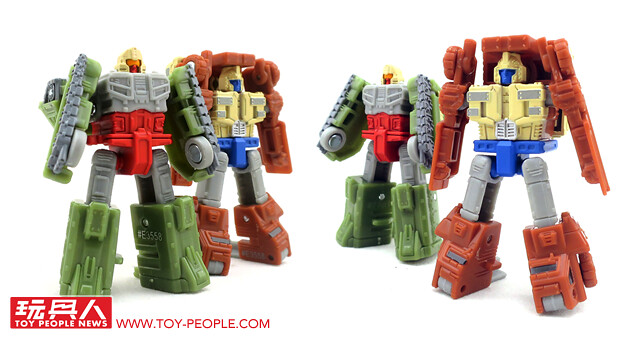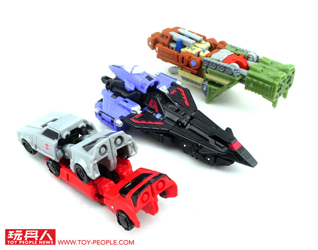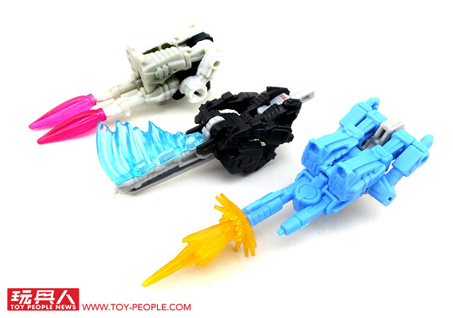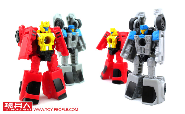 ➢微型戰士(Micromasters):將過去的同名系列加以強化,由兩隻同綑的方式進行販售,不僅能各自獨立變形為載具或機器人,更能兩兩結合為中型武器讓其他變形金剛拿持,除此之外,武器型態下也能裝備鬥爭戰士所附的特效零件,一同遊玩樂趣更加豐富!