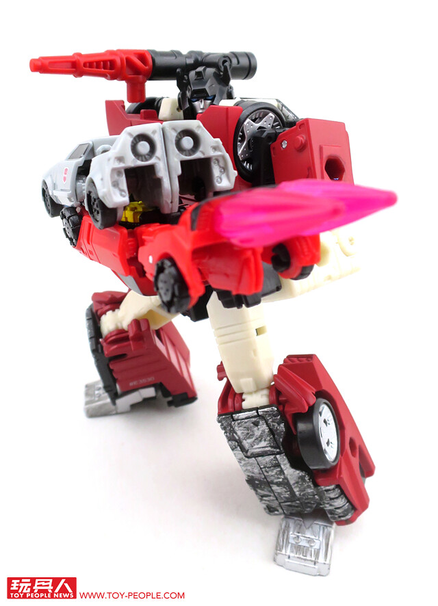 ▼WFC-S1「火驅」(Firedrive),對應G1的博派「火霹靂」(Firebolt),為「羅德」(Hot Rod)的標靶戰士夥伴,可變形為「雙充能靜電光子加農」(Duo-Charge Electrostatic Photon Cannon),附屬了兩枚紫色的射擊特效零件。