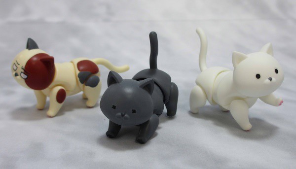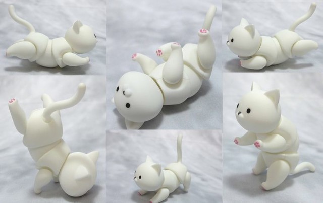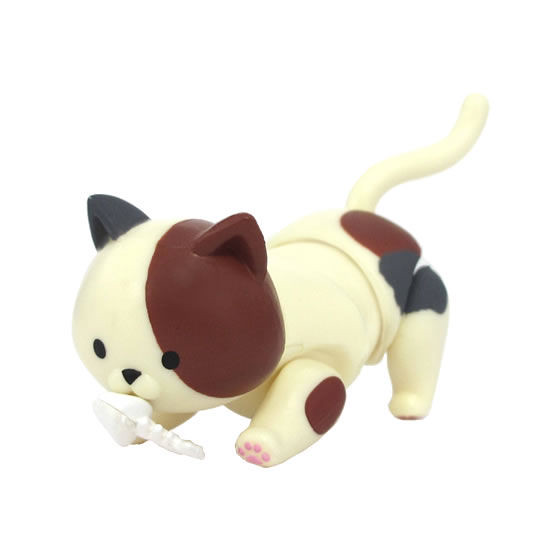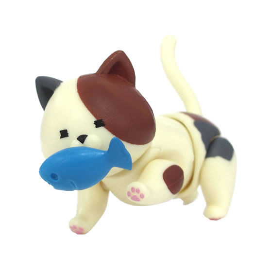 「CupFigure 磁鐵貓(まぐねっこ)」是一款相當迷你的貓咪可動模型,採用超可愛的漫畫風造型,以三毛、灰、白三種毛色與三種表情搭配出 9 種不同的造型,不論是悠悠哉哉的臉或是誇張的白眼表情都超可愛!最大賣點在於全身高度可動的關節設計,讓貓咪能作出在地上滾來滾去的逗趣姿勢,頭部也內藏了磁鐵,能吸附配件中同樣內藏磁鐵的鮮魚、魚骨,讓貓咪叼到處跑呢~!