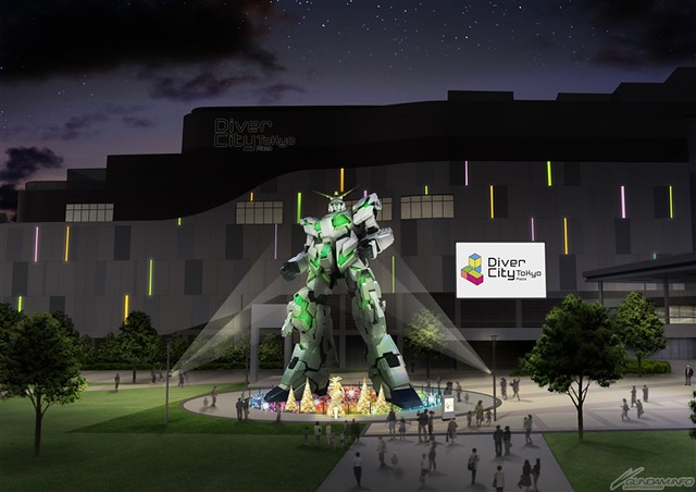 實體大立像「RX-0 獨角獸鋼彈 Ver.TWC(TOKYO WATER FRONT CITY)」,高 19.7公尺、重 49 公噸。全身上下約有 50 處發光部位,裝甲上印有「Katoki Hajime(カトキハジメ)」老師設計的新規標誌,甚至天線的開合、臉部變更模式、肩・腰・膝等部件展開機構皆有重現,到了夜晚就會從「獨角獸模式」變形為「毀滅模式」,以最大限度再現劇中的變形演出,白色的裝甲更能配合華麗的燈光秀投影演出!