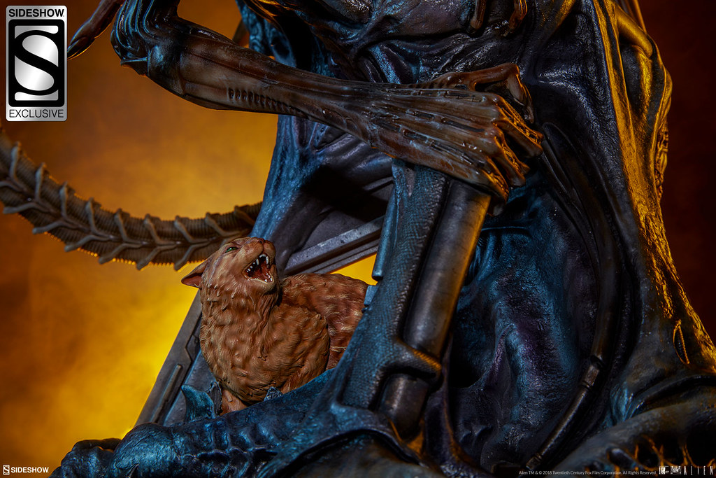這款整體呈現盤據狀態的異形戰士,底座是以刻畫細膩的毀壞太空船為題設計;在EX版中,還有貓咪Jonesy 可以搭配,小編只能說不愧是貓皇啊~面對如此恐怖的異形戰士還敢齜牙咧嘴地吼叫......。