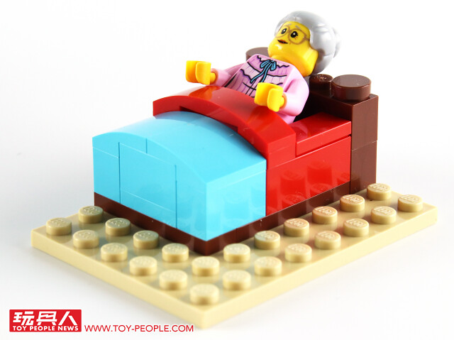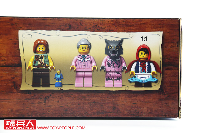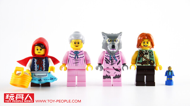 ▼這次的人物一覽~小紅帽的上衣、藍色裙子都有美美的印刷,花邊元素、紅色短披風讓她更加可愛,大野狼跟奶奶都一樣穿著粉紅色睡衣,只是變成了破破爛爛版本XD!戴著的眼鏡仔細一看會發現中間根本沒有連接的零件呀,巨人是用一般的樂高人偶,所以傑克就以微型比例(Micro-Scale)來呈現囉。