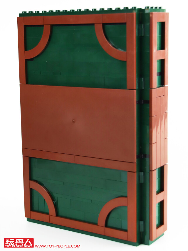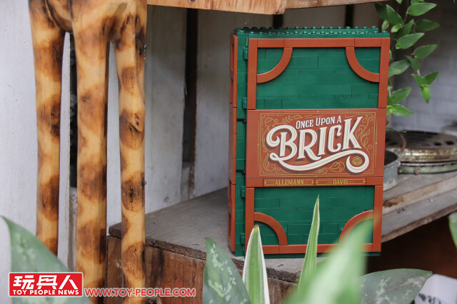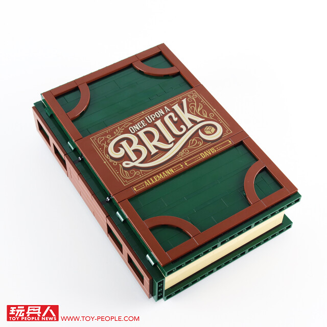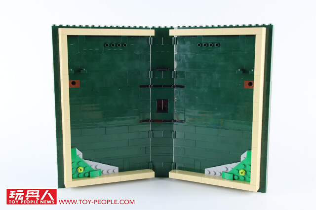 ▼那就先來看看書本外觀吧!工整的長方造形,以褐色平滑磚作為邊框來點綴,頂部選擇呈現出樂高的顆粒造型,沒有再多使用綠色平滑磚修飾;在這裡,小編是偏好再用上一些平滑磚讓完整度再提高啦XD。