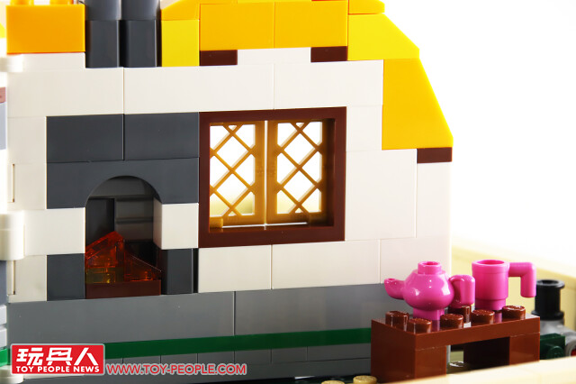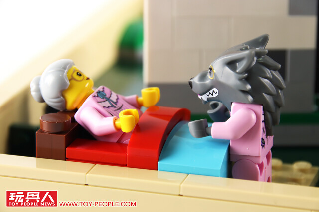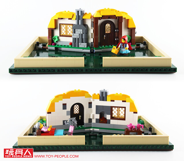 ▼小紅帽的小屋場景從正面看有圓頂木頭大門、煙囪、漂亮的窗戶跟花花草草,設計師以少量的零件細膩地勾勒出富含鄉村氣息的房屋,礙於空間的限制,從後面看就只有簡單的火爐,錯位的床鋪跟桌子,不禁讓小編想到《ONE OIECE》裡蒙布朗‧庫利凱的層板屋子啊XDDDD