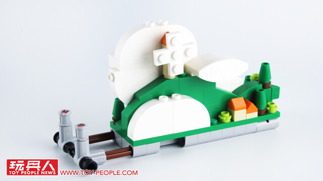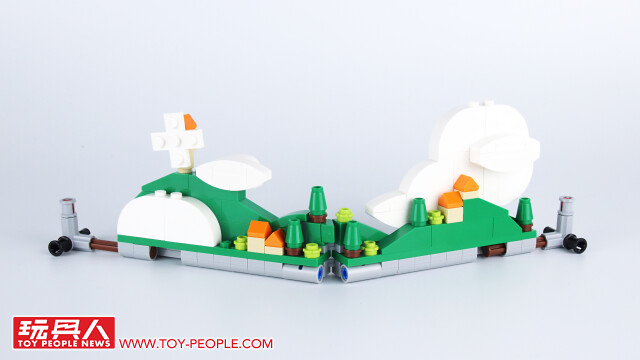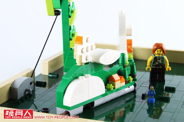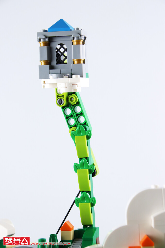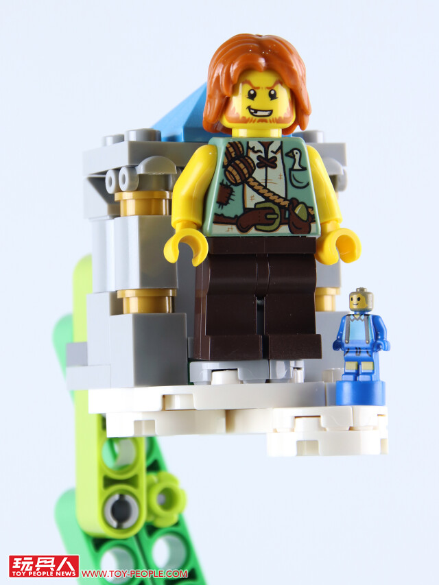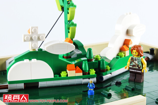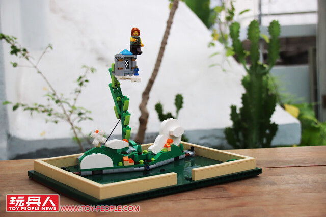 ▼再來就是傑克與魔豆的故事啦~由於整個場景涵蓋的範圍比較大,所以在比例上就顯得沒那麼精確,但是綠油油的山丘、白色的雲朵、有著橘色屋頂的小屋,以及用科技磚為主體所製成的巨大藤蔓加上巨人城堡的小窗子,不禁讓人感到故事本身神奇的魔力!