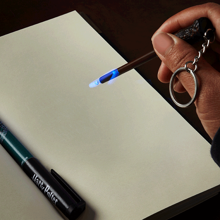 過去ThinkGeek 也曾推出還原了日記被蛇妖尖牙刺穿的擺飾作品,這次的日記則是真的可以讓你寫東西進去~書衣外觀、全白的內頁都還原了電影造型,有趣的是,以本作附屬的史萊哲林隱形墨水筆所寫下的字,只能用搭載紫外線燈照機能的魔杖才能清楚看到,真的很有趣啊~日記一共70頁,在寫下自己的秘密,或是想說的話之後,就把這本日記跟魔杖交給你信任的人吧XDDDD