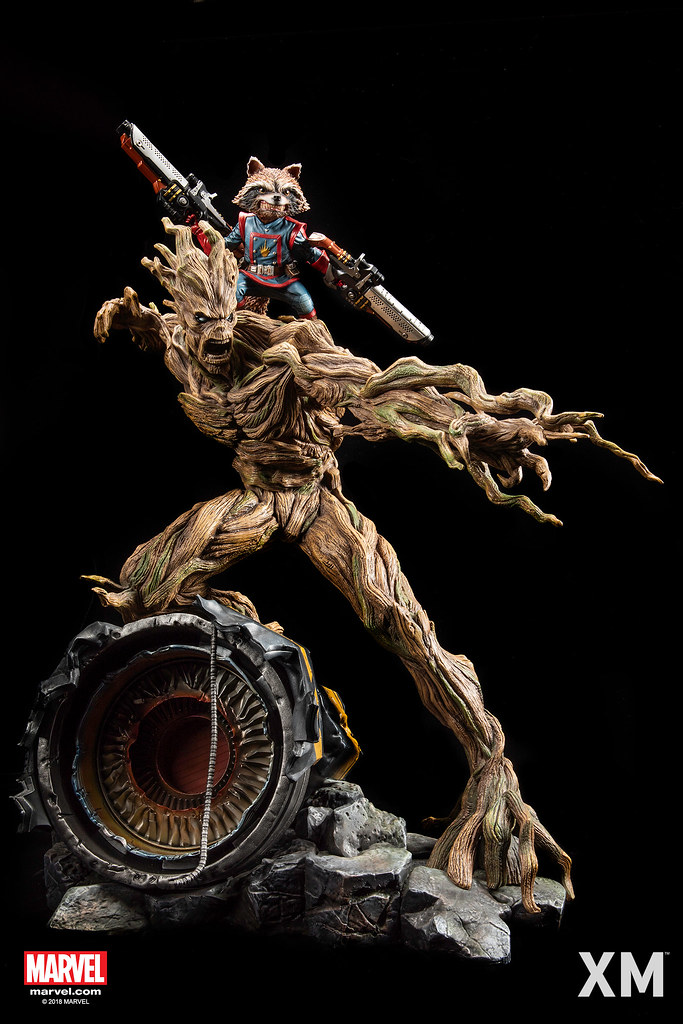接續日前推出的超爆帥「星爵」,新加坡雕像品牌XM Studios 工作室旗下的「Marvel Premium Collectibles」系列於今(16)日再度發表了另外兩位星際異攻隊的成員「火箭&格魯特」(Rocket and Groot)1/4 比例全身雕像,預計將於2018年11月16日晚上11:00 開放訂購!!