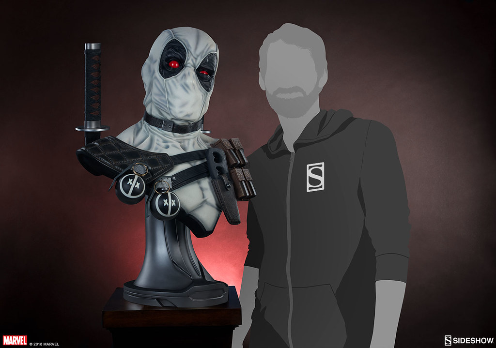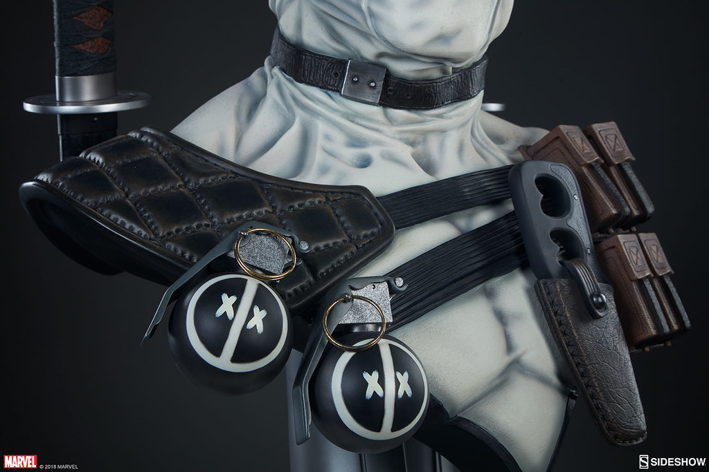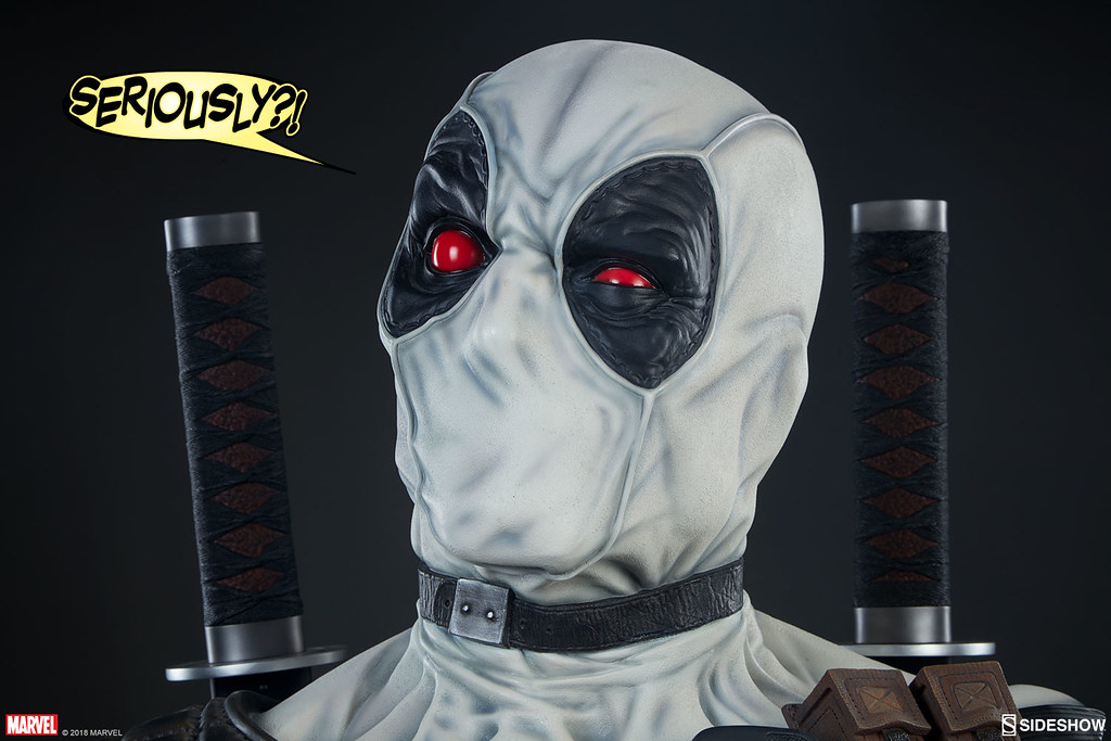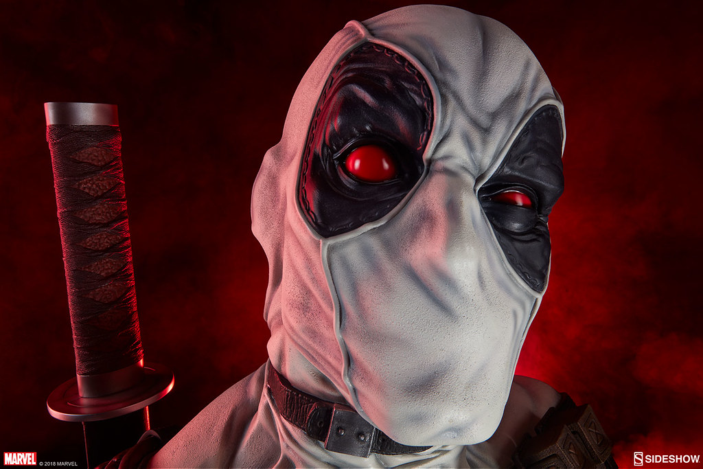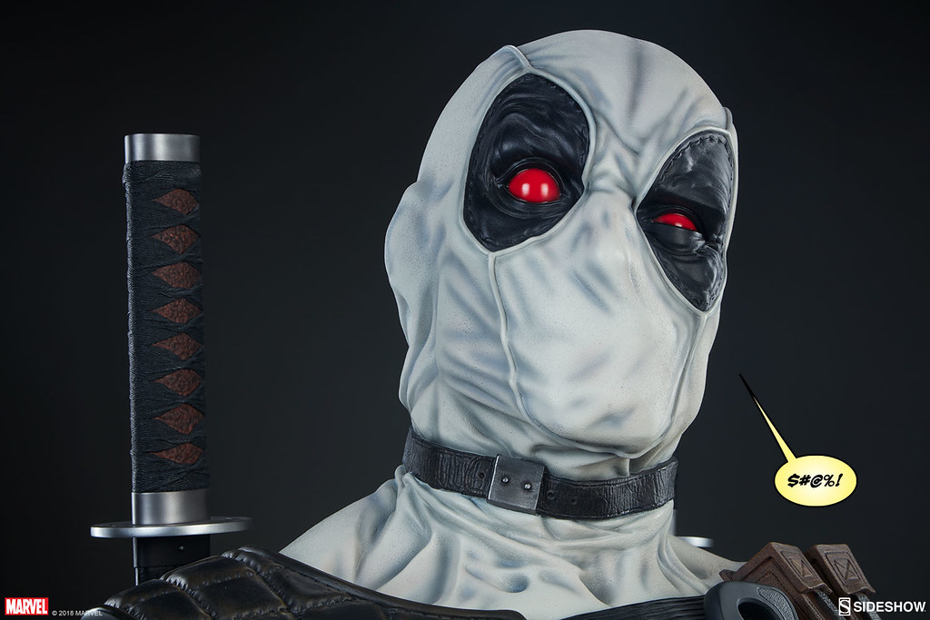 在2017年,Sideshow 就已經推出過招牌紅、黑配色的「死侍」,這次則是以「X特攻隊(X-Force)」的服裝配色來推出!X-Force 是MARVEL 漫畫中曾多次成立的秘密組織,集合變種人、超能者執行暗殺、救援等等危險任務,隨著組織改組成員也接連更新,死侍加入的是以金剛狼為首的X-Force,當時的任務主要是暗殺所有對變種人有威脅的人,因此這時的X-Force 成為見不得光的暗殺部隊;此組織最大特色就是成員皆身穿黑、灰、白配色的服裝。
