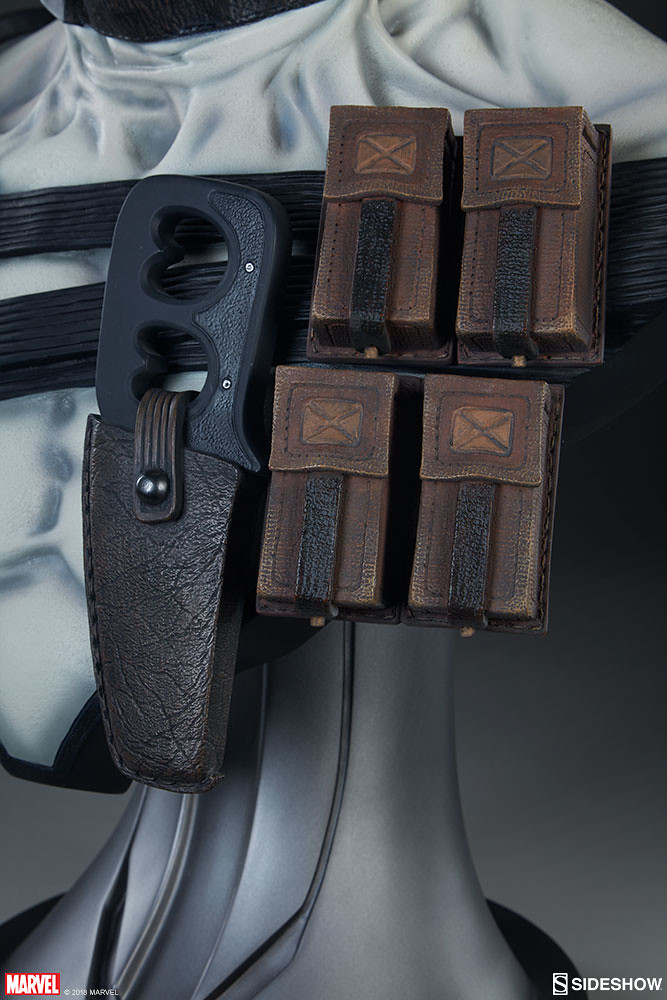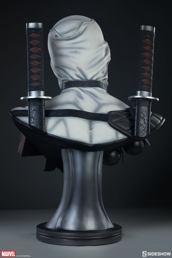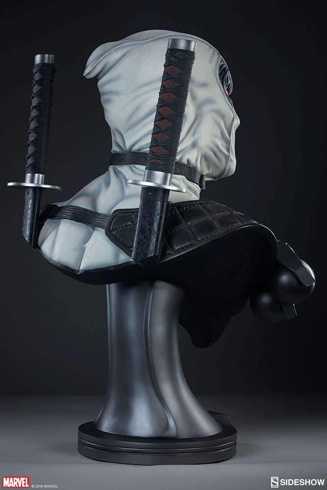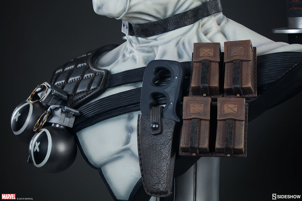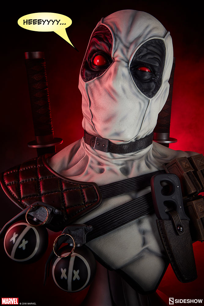 在2017年,Sideshow 就已經推出過招牌紅、黑配色的「死侍」,這次則是以「X特攻隊(X-Force)」的服裝配色來推出!X-Force 是MARVEL 漫畫中曾多次成立的秘密組織,集合變種人、超能者執行暗殺、救援等等危險任務,隨著組織改組成員也接連更新,死侍加入的是以金剛狼為首的X-Force,當時的任務主要是暗殺所有對變種人有威脅的人,因此這時的X-Force 成為見不得光的暗殺部隊;此組織最大特色就是成員皆身穿黑、灰、白配色的服裝。