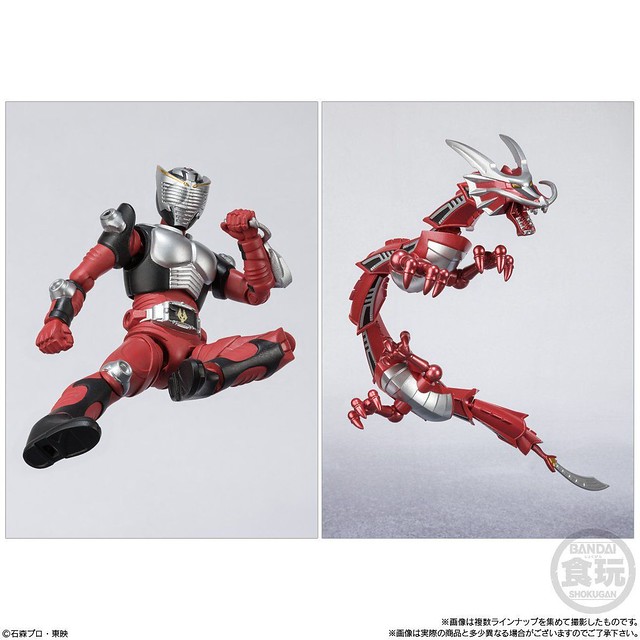 這次SHODO-X系列第四彈將以《假面騎士龍騎》特攝劇集為題材,來推出有「假面騎士龍騎」、「假面騎士龍騎空白形態」以及「假面騎士夜騎」,此次連龍騎的契約獸「無雙龍(Dragreder)」是以(A-配件)+(B-配件)來呈現,劇中龍騎的契約獸"無雙龍"會於空中飛行,劍狀的尾巴可供龍騎使用「赤龍刀」,口中能吐出火球,還能與龍騎搭配使出絕招「龍騎士踢」,對《假面騎士》掌動系列有興趣的玩具人千萬別錯過了啊!
