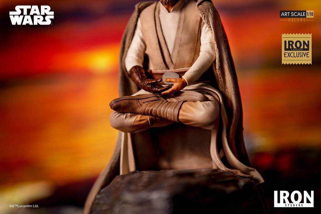 「路克·天行者 1/10 比例全身雕像」高約20 公分,利用連帽長袍當作支撐,忠實再現了路克漂浮懸空、使用原力的模樣,頭雕傳神地形塑出演員「馬克·漢米爾(Mark Hamill)」的臉部輪廓,有閉著雙眼和看向遠方兩種狀態,但如果能營造出劇中頭髮被風吹拂的動態感就更棒了!服裝有著細膩的皺褶表現與上色,從背面看,長袍上更是做出極其逼真的破損與髒污處理,本作絕對是最適合在夕陽時刻拿出來拍照的雕像呀XD!