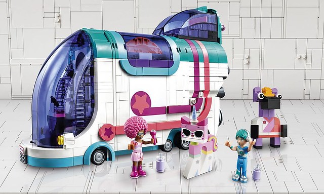 首先要看到的就是這款外觀相當科幻、顏色搭配非常LEGO Friends 的派對巴士,雖然目前尚未公開車體展開後的大圖,但從包裝盒的小圖示就能窺見有多麽精彩呀~除了有發光磚、逗趣人偶之外,展開之後就能看到喇叭、舞台、旋轉舞台燈,根本就是樂高版的高科技電子花車XDDD 爆炸頭人偶跟腳超長的Unikitty 都太爆笑了!!