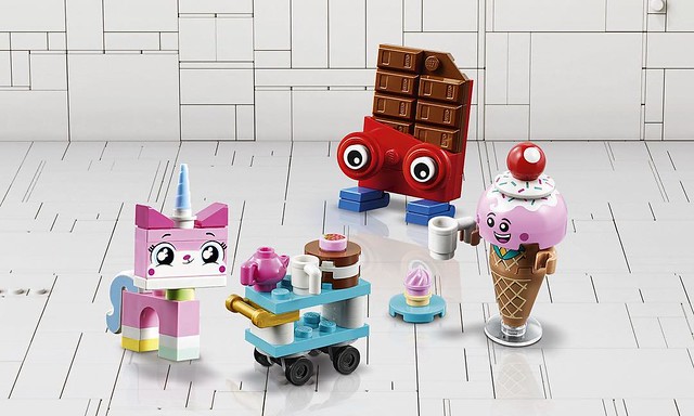 這組相信會讓女孩們愛不釋手!超可愛的巧克力人、令人融化的甜筒人一起陪你度過超讚的甜點時光~而且Unikitty 還有另外一種開懷大笑的表情!甜點推車也很讚。