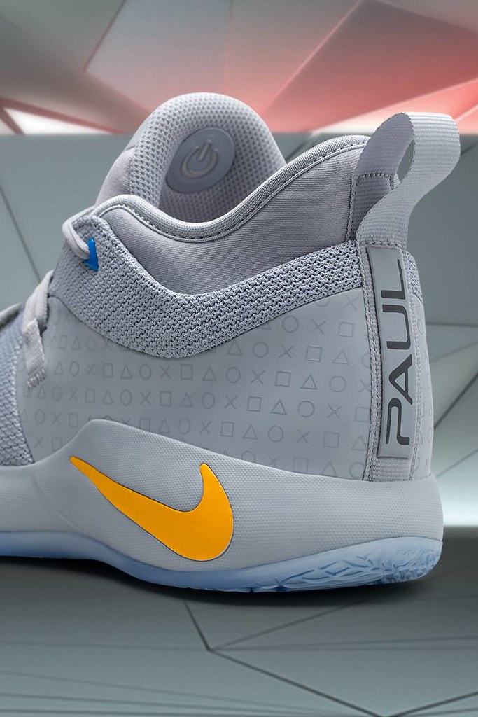 「Nike PG 2.5 x PlayStation」以Nike PG2.5 為基底,融入了初代PS 主機的灰色主題色,並在許多地方注入主機的各式元素,像是鞋舌有著四色的PS 標誌LOGO,鞋身與魔鬼氈束帶等部分面料上的叉叉、圓圈、方塊、三角浮雕圖樣,最上面的鞋帶穿孔也施以不同的顏色呢!而NIKE 為Paul George 所設計的專屬標誌給人銳利、強悍的視覺效果,在右腳鞋舌上的標誌還可以藉著背面的按鈕來發光!鞋跟處也有著Paul George 的名字,令人懷舊的設計與大膽用色,很值得球迷與電玩迷收藏呀!