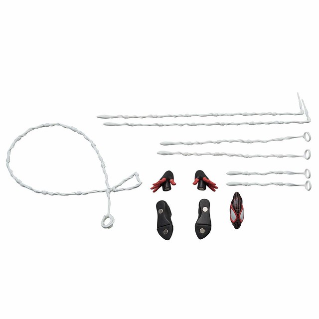 這次將以《終極蜘蛛人》漫畫裡面「麥爾斯·莫拉雷斯」所成為的蜘蛛人版本來呈現,他是被不同的蜘蛛所咬傷的,雖然有著和彼得相似的能力,但也有著自己獨特的能力。身上是黑紅顯眼的配色造型,作品附有吐絲的特效配件以及有著強力磁鐵的交換手首、腳掌配件可以替換等等,讓作品可以吸附金屬壁面在現劇中蜘蛛人飛簷走壁的樣貌,喜愛《蜘蛛人》漫畫作品系列的玩具人可以參考一下歐!