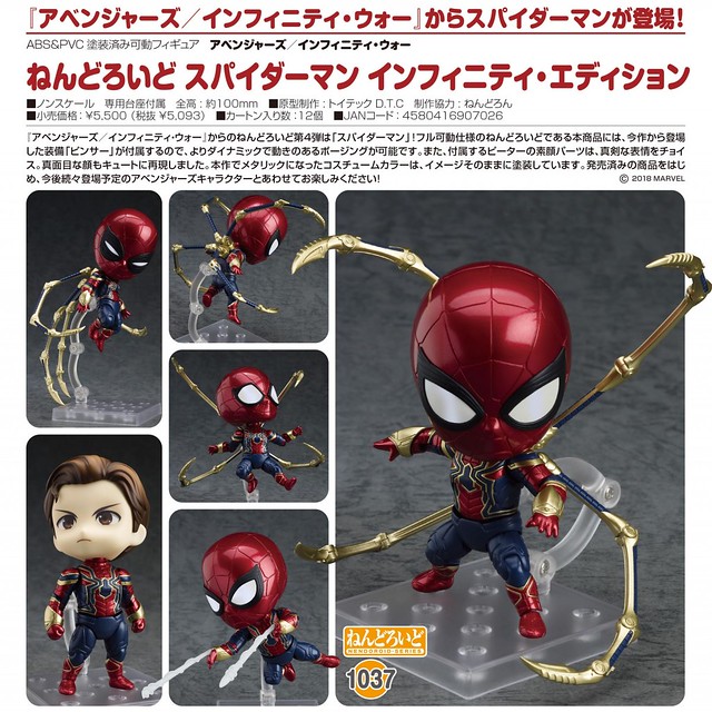 知名日廠Good Smile Company玩具公司所暢銷熱賣的Q版「黏土人」(ねんどろいど)玩具系列,之前以《復仇者聯盟3:無限之戰》為題材已經公開了「黑豹無限之戰版本」、「美國隊長無限之戰版本」以及「鋼鐵人Mark50無限之戰版本」等等後,近日官網繼續公佈將具續推出無限之戰系列的第四彈「蜘蛛人 無限之戰版本(スパイダーマン インフィニティ・エディション)」(名稱暫譯)!官網近日公開其宣傳照片以及販售相關資訊。