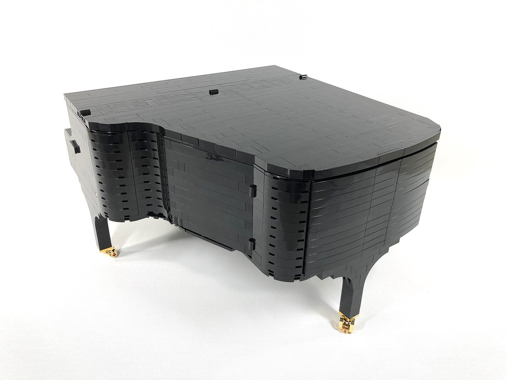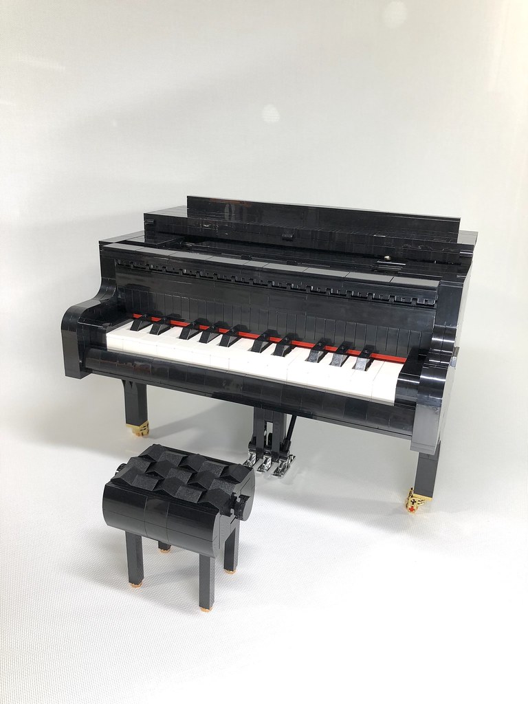 本次的「可彈的樂高三角鋼琴」共計用上2798 個零件,作者Donny 在LEGO IDEAS 平台以SleepyCow 的身份投稿,在短短的45 天之內就已經獲得超過7700 票的支持,現在得票數已經達到8133!本作高度再現了真實鋼琴的外觀、比例,並找到非常適合的弧形磚勾勒出曲線造型,琴蓋、鍵盤蓋、琴鍵、踏板、樂譜架、支撐桿......等都忠實還原,而且座椅還可以自行調整高度,實在太厲害啦~在踏板、琴腳腳輪、座椅腳的底部採用充滿光澤感的零件,為作品更添華麗質感!