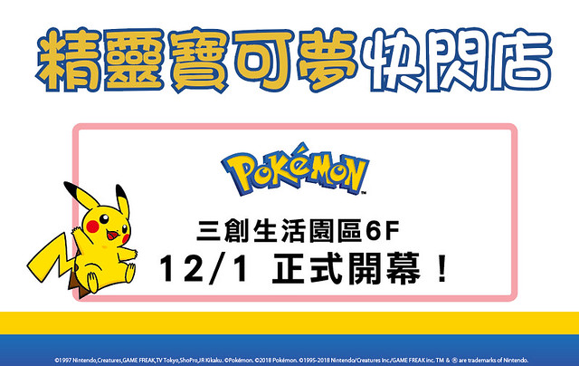隨著 Nintendo Switch 新遊戲《精靈寶可夢 Let’s Go!皮卡丘/伊布》上市,全球各地再度掀起一股寶可夢熱潮,讓許多從《Pokemon Go》認識寶可夢的訓練家正式入門寶可夢系列作。為紀念遊戲上市,代理商傑仕登股份有限公司也將在 2018 年 12 月 01 日至 2019 年 02 月 28 日期間,於三創生活園區 6F 開設《精靈寶可夢》快閃店!