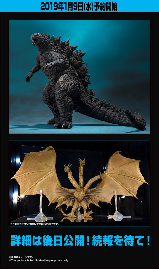日本 BANDAI SPIRITS 公司收藏事業部目前在『Tokyo Comic Con 2018』中的自家攤位展出了「S.H.MonsterArts 哥吉拉(2019)」、「S.H.MonsterArts 摩斯拉(2019)」、「S.H.MonsterArts 王者基多拉(2019)」、「S.H.MonsterArts 拉頓(2019)」四款出自《哥吉拉2:怪獸之王》的新作上色原型,並且預告哥吉拉、王者基多拉將於 2019 年 01 月 09 日起開放預購!