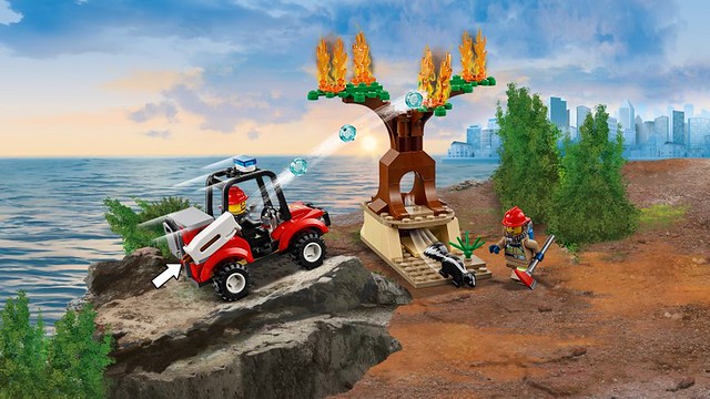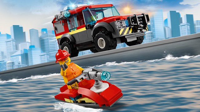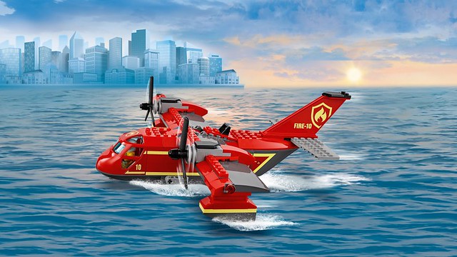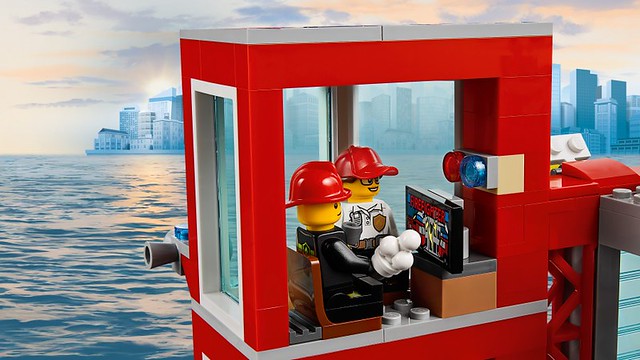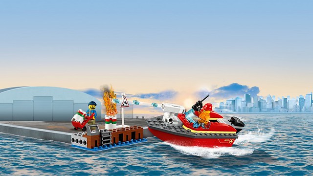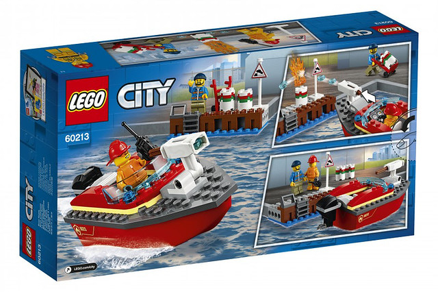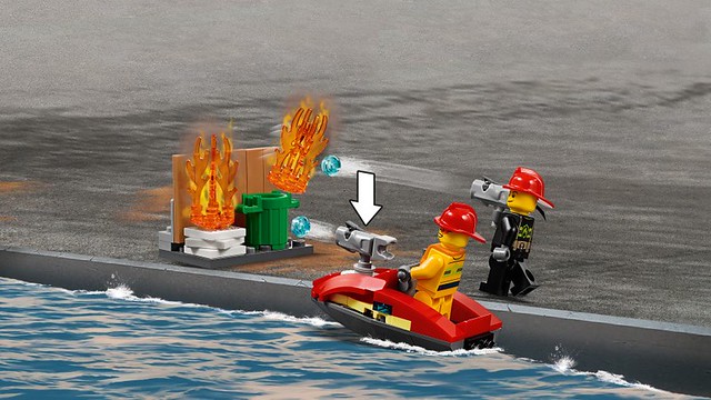 首先是這波最小的盒組,讓人感興趣的是救火快艇上搭載的噴射器,用1x1 小圓點當作用來滅火的水,一個用噴射「水彈」搶救港口失火貨物的概念!