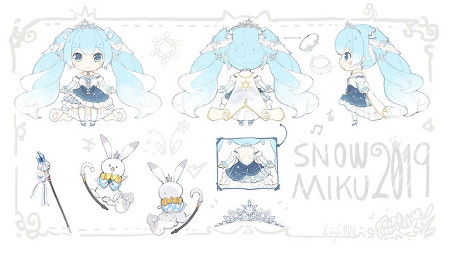 「雪未來(雪ミク)」是宣傳北海道冬季觀光的形像大使,她的身旁會跟著可愛的蝦夷雪兔小寵物「Rabbit Yukine」。以 2010 年札幌雪祭中製作的「初音未來雪雕」為契機,企劃・開發“初音未來”的Crypton Future Media株式會社正好也是立足北海道札幌市的公司,之後北海道都會舉辦一年一度的「SNOW MIKU」祭典(與札幌雪祭共同),每年以不同的主題在網路上徵求服裝設計。2019 年的主題為「以『北海道的雪』為概念的公主」,最終於千件投稿中採用了由「-L F-」設計的造型。