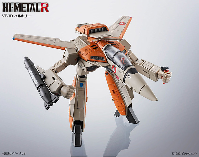 日BANDAI萬代玩具公司的合金《超時空要塞》Hi-METALR 可動系列,已經推出多款精彩動畫當中所出現的相關戰鬥機體,這次將繼續推出「VF-1D 武神機(バルキリー)」系列續作品,這次以當時開始放映《超時空要塞》動畫時候的感動來呈現,以最初當場故事主人翁「一条輝」駕駛量產機VF-1D ,用機體手掌握住女主角「林明美」的模樣,此作附有豐富配件,機體一樣有三段式不同變型的設計,喜愛《超時空要塞》系列作品的玩具人可以參考一下歐!