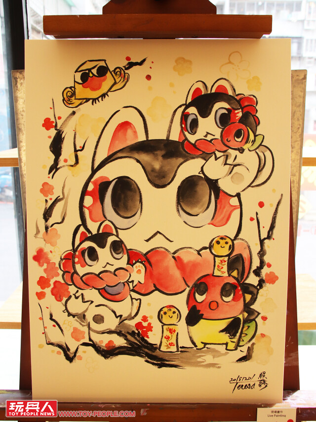 現場還有更有份量的「巨大犬張子」喔!可以更清楚看到Teresa Chiba 在作品中注入犬張子的剝落、掉色元素!而精彩的上色細節更是讓人大呼過癮!而且在尾巴處還有Teresa 老師的簽名喔~另外,現場還有「キブナド Kibunadon」怪獸的可愛作品呀~有興趣購買的玩具人可以到Paradise 的官網和Facebook查詢!