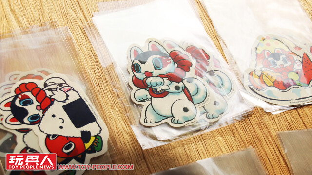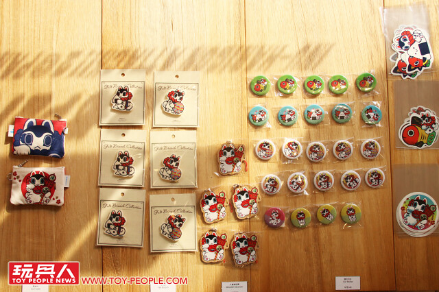 除了立體作品之外,還有一區擺滿了以「犬張子(Inu-Harigon)、「キブナド Kibunadon」為題設計的貼紙、胸章、零錢包......等周邊喔!