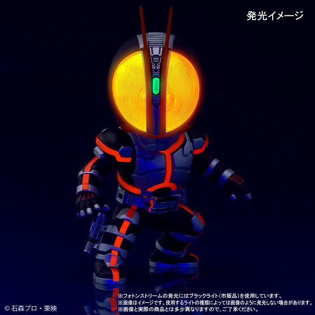 系列都是以約2.5頭身的Q版本比例來呈現,在其造型服裝的褶皺和腰帶細節等等都精彩再現,讓喜愛的玩具人可以享受將喜愛的騎士濃縮縮小到手掌大小的尺寸魅力。另外於頭部面罩複眼部份配置有Led燈的發光設計,此作預計於PREMIUM BANDAI線上商店與X-PLUS TOYS的少年RIC線上商店兩個通路上限定販售,喜歡《假面騎士555》系列的玩具人可以參考一下。