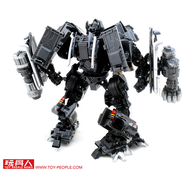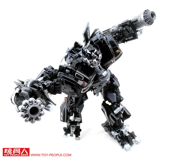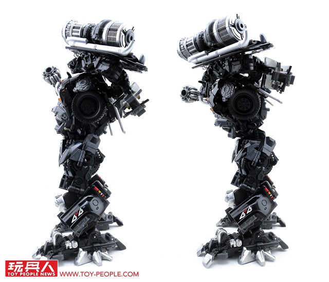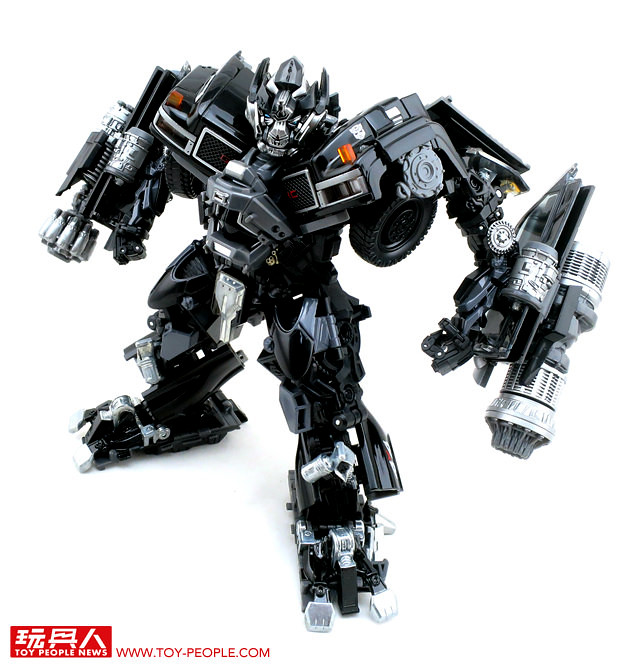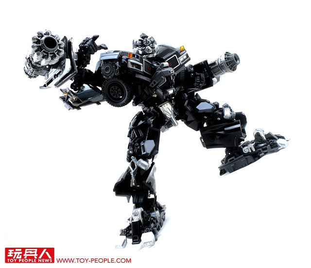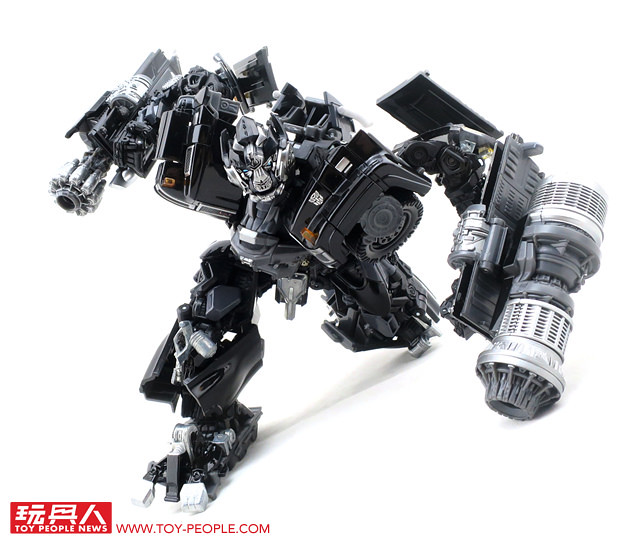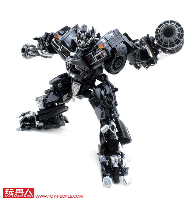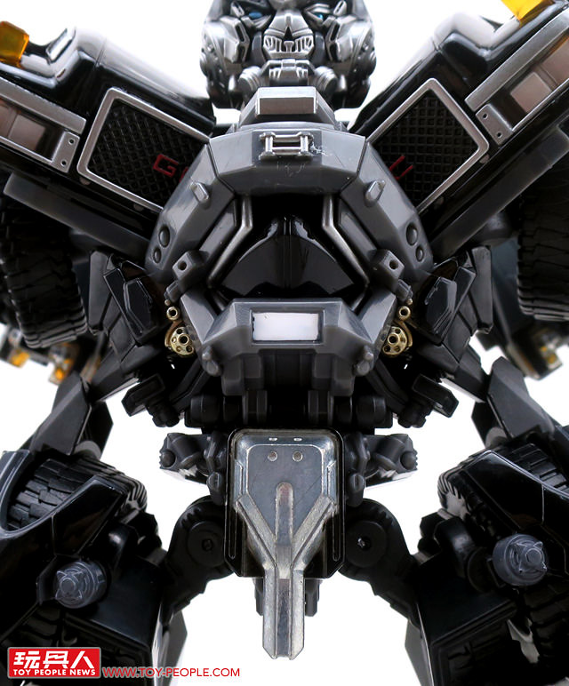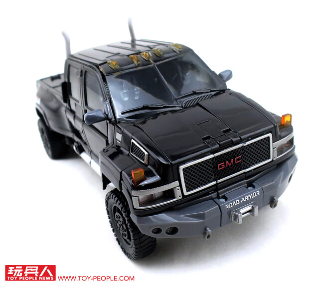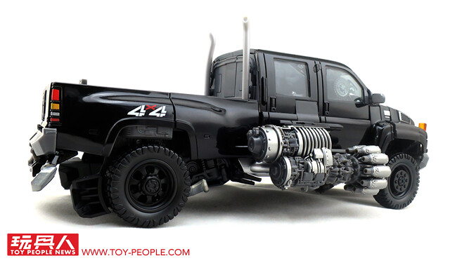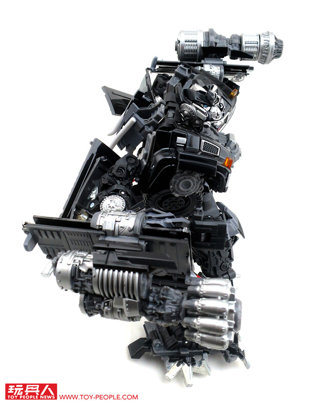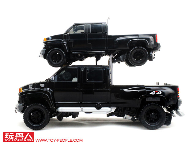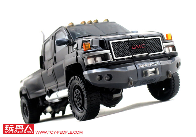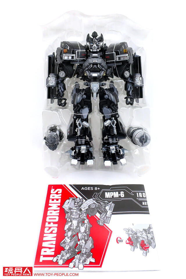 在推出了大黃蜂、柯博文、叛官(Barricade)等知名人氣角色後,鐵皮也終於登上MPM系列的舞台,以最高規格的設計再次復出。載具模式在通用汽車(GM)的授權下,有著相當豐富且精密的細節刻劃,車頭的水箱罩、保險桿、車燈、輪框等處,無一不是充滿設計師的用心,除此之外,車殼表層的光澤也有著比擬實車烤漆的質感,即便是以Topkick卡車模式作為一般展示也絲毫不遜色。而機器人模式下,除了擁有更符合劇中形象的比例外,各處精巧的機構造型可說是應有盡有,諸如戰損造型的頭雕、可開闔的下顎面罩、重火力的雙重加農砲、部份的合金零件等等,可說是款造型滿滿、份量感十足的華麗傑作,而令人絞盡腦汁的變形步驟,也絕對能滿足喜愛來回翻轉的玩家!