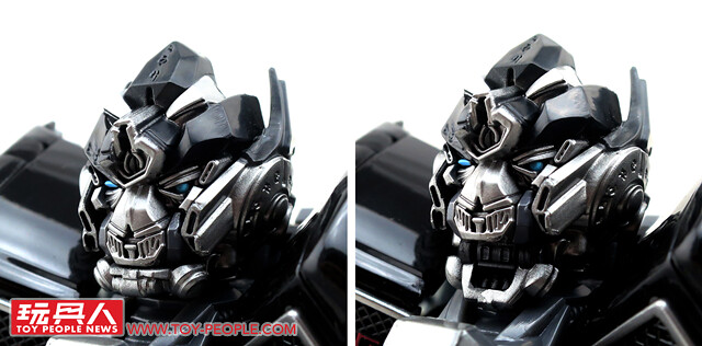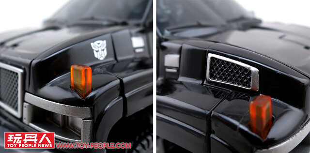 ▼車頭引擎蓋雖然因為變形機構的關係而被拆成三塊,但是質感依舊是棒。附帶一提,請注意雨刷和後照鏡等處的細節刻劃。