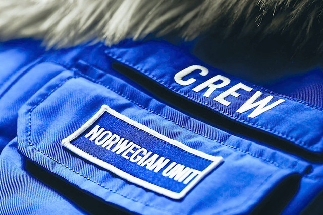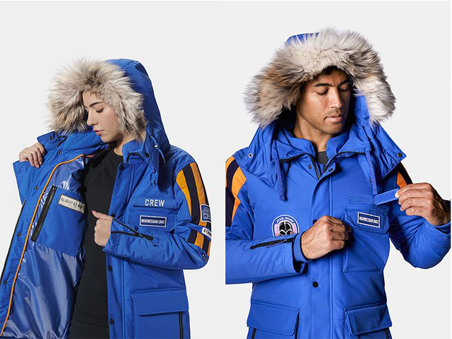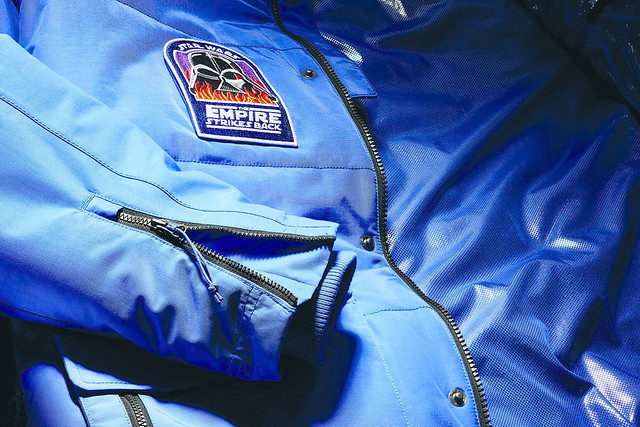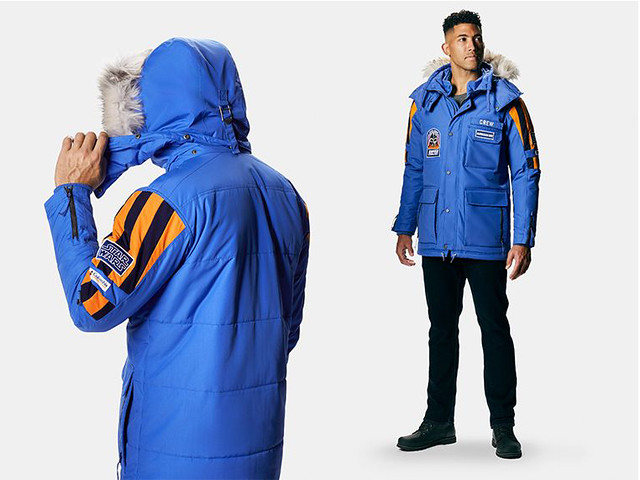 本次的「星際大戰劇組人員防寒大衣」保留了原汁原味的外觀設計,並注入全新的機能!表面防水、透氣,也有搭載Omni-Heat™ 熱能反射科技的內襯,使其更能長效保暖;藍色基底搭配搶眼的條紋設計,在左臂做出了Star Wars 和Columbia 的標誌,右胸有著伴隨熊熊火焰的達斯·維德頭盔刺繡徽章,左胸的CREW 還可以客製化成自己的名字,NORWEGIAN UNIT 的字樣也超帥氣啊!而為了紀念劇組在如此嚴峻的環境下進行拍攝,更是把冰河的經緯度給標示進去了呢!