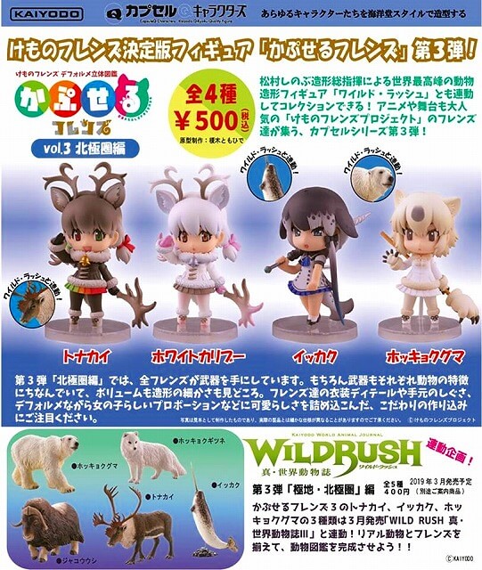 2019年3月7日新增官方宣照片以及販售相關資訊,膠囊Q角色集《WILD RUSH》第三彈的『極地・北極圏編』一樣也是由具備高度造型技術、豐富動物知識的原型師「松村忍(松村しのぶ)」來擔任作品造型的總指揮,在集結松本榮一郎、樹山、菅谷中等造型家,打造出從細部特徵、花紋毛色、重量感都極為精彩的動物作品。